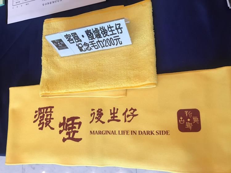 NTD$200材質好的吸水毛巾,上面印製客風‧廢墟後生仔的演出logo,顏色是呼應演出中工人段落充滿朝氣的黃色,實用又具紀念價值。