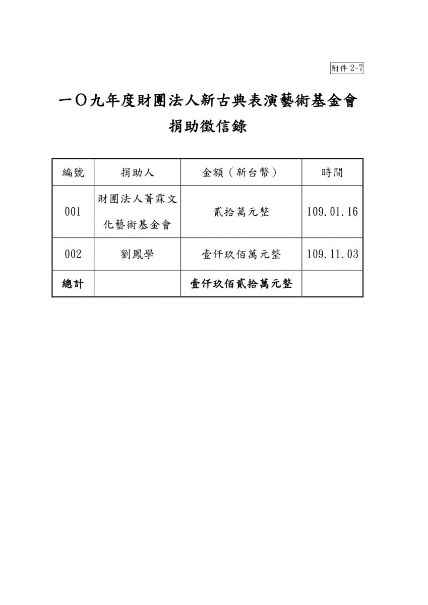 109年度 捐助徵信錄